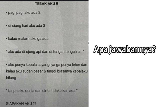 Siapakah Aku Ayo Uji Logika Kamu Dengan Tebak Tebakan Ini from awsimages.detik.net.id Check spelling or type a new query. We did not find results for: Maybe you would like to learn more about one of these? Kunci jawaban tebak siapakah aku.